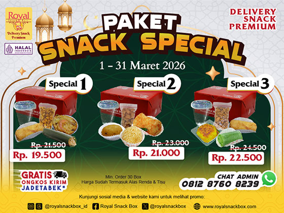 Dapatkan harga khusus kletikan (Rp. 2.500/pacs) setiap pembelian snack box untuk produk ke-4 atau ke-5 :